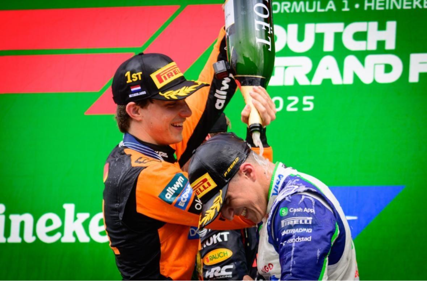 Mais c’est au 65e tour, que l’issue du Grand Prix se voit scellé. Le V6 Turbo-Hybride Mercedes propulsant la monoplace de Lando Norris rend l’âme. L’anglais est contraint à l’abandon. Intouchable, Piastri remporte le Grand Prix des Pays-Bas, en inscrivant son nom pour la première fois dans le prestigieux livre des pilotes ayant effectué un Grand Slem. L’australien a signé la pole position la veille, a inscrit le meilleur tour en course et a remporté, tout en ayant mené l’entièreté des tours du Grand Prix. Une performance exceptionnelle !