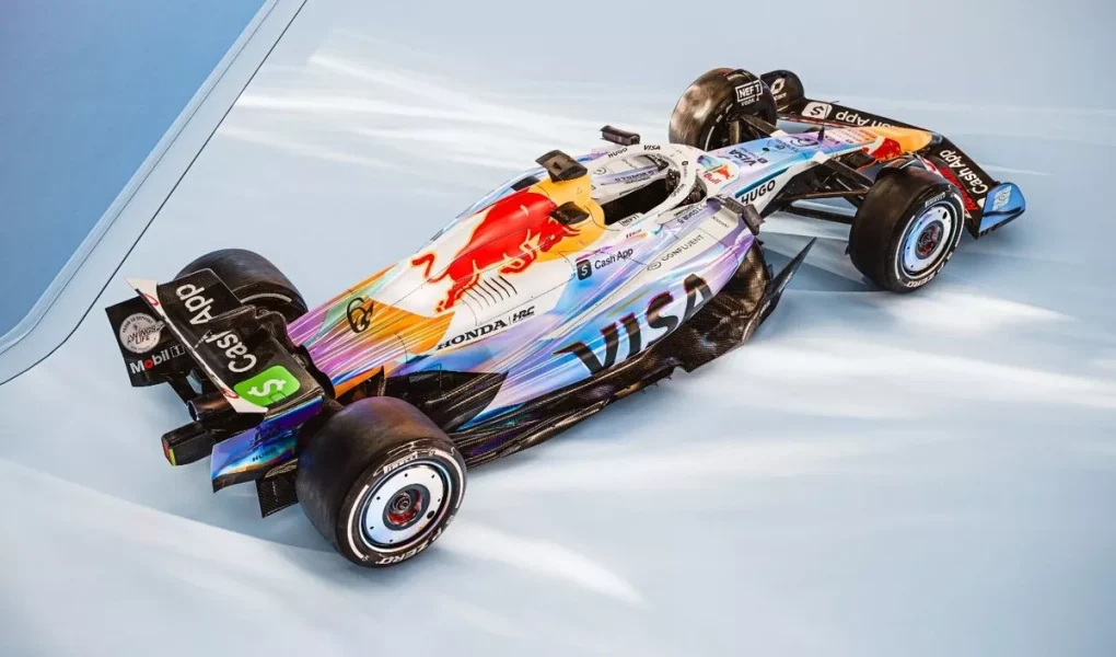 A l’occasion d’une opération commerciale avec son sponsor principal Cash App, les monoplaces Racing Bulls arboreront une livrée “holographiques”. Le design s’inspire d’ailleurs de la “Holo Card”, la dernière carte de banque introduite par Cash App.